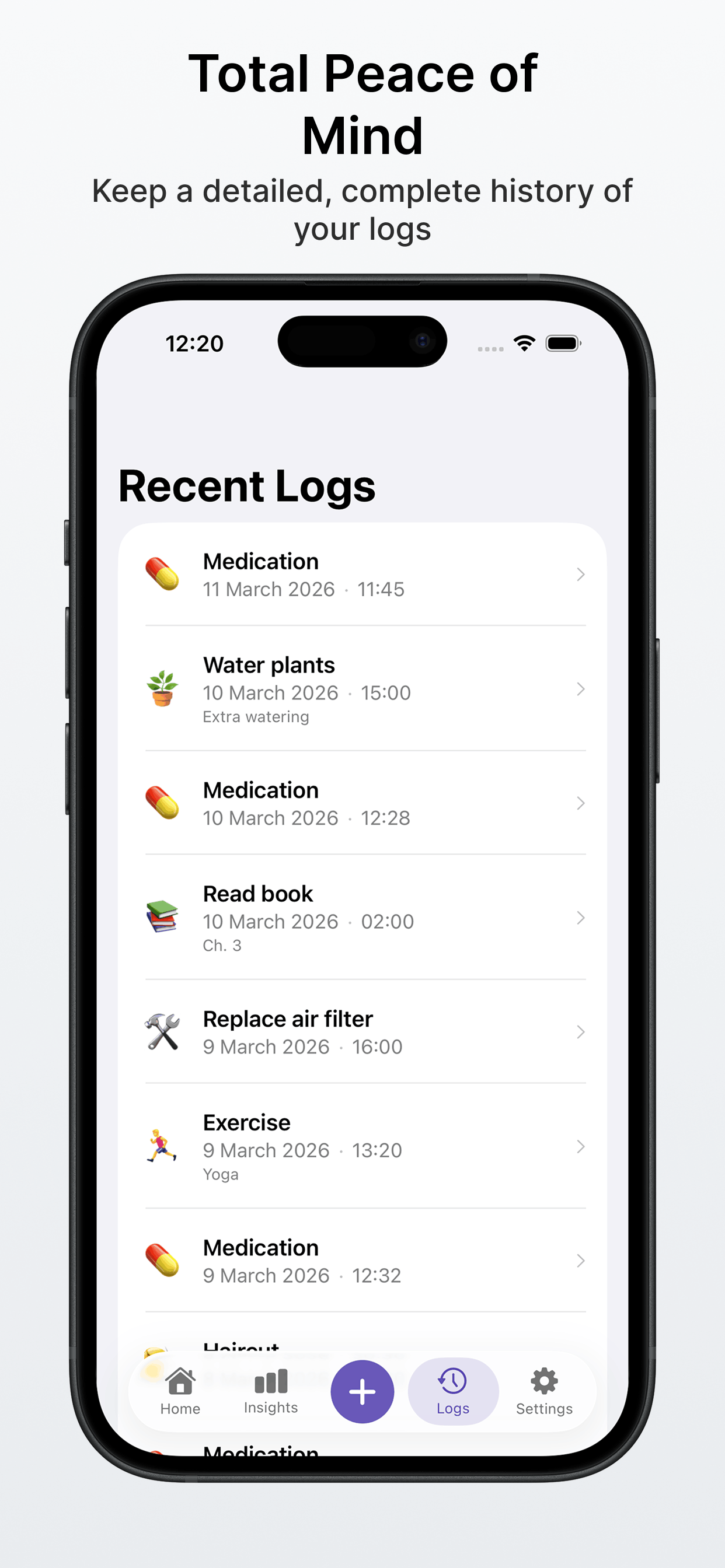 The zero-friction tracker for the irregular events of life. No daily streaks. No red-calendar guilt. Just a simple timestamp so you never have to ask, “When did I last do that?” again.